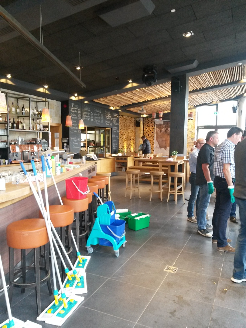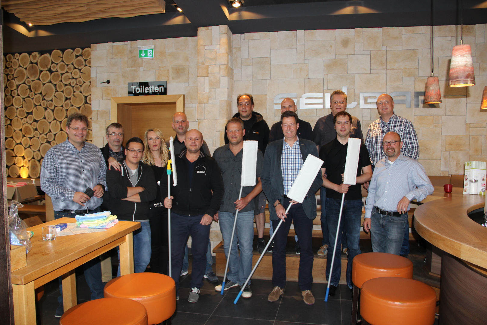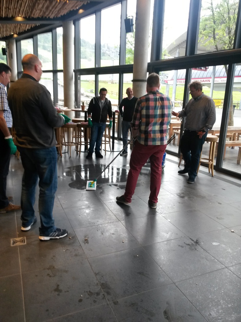 Beim geprüften Desinfektor und Gebäudereinigungsmeister lernte Man(n) z. B. wie man den Boden richtig wischt und welche Putzmittel man überhaupt braucht. Nach einem Abend mit viel Spaß beim Putzen,